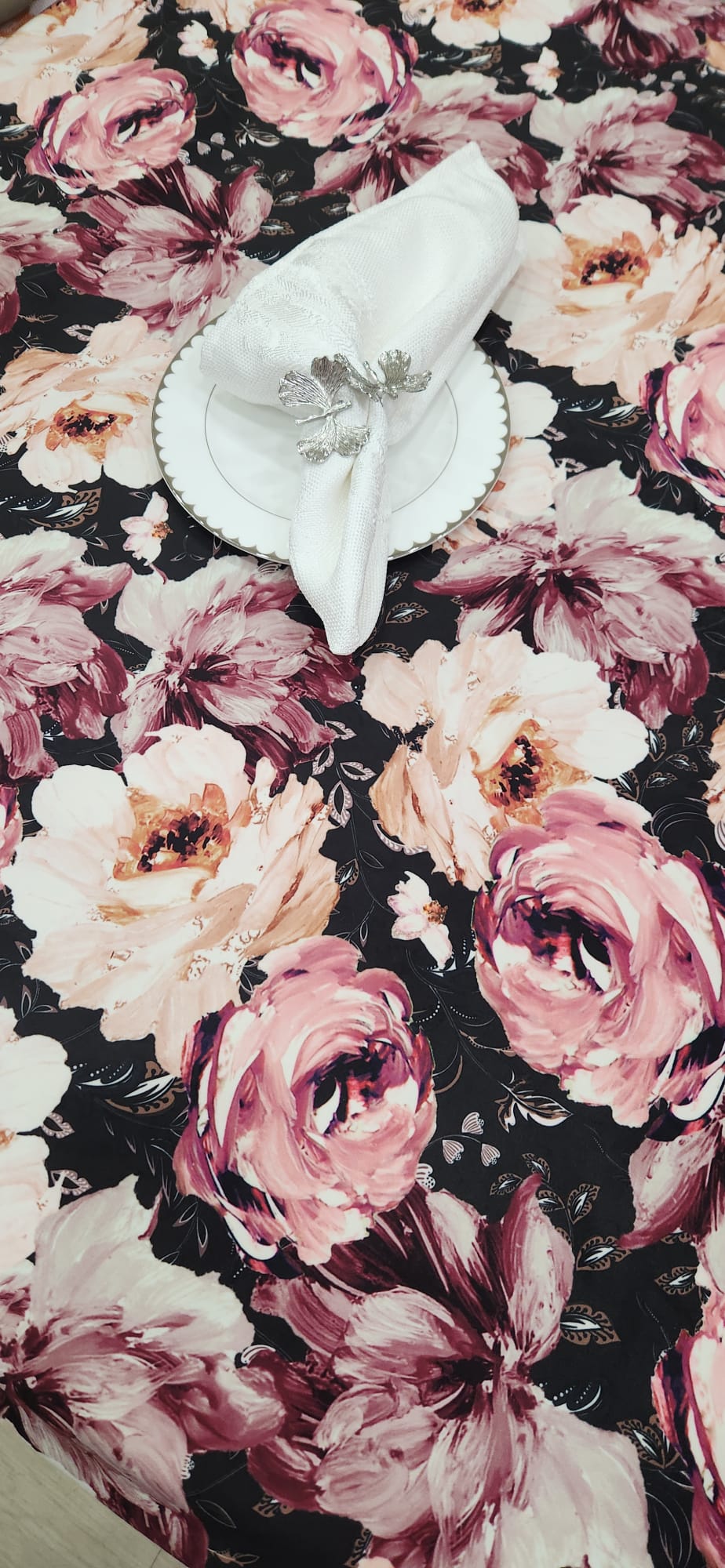 European upscale velvet Black / multi floral Machine washable and dryable Another dimension to your Tablescape A winner